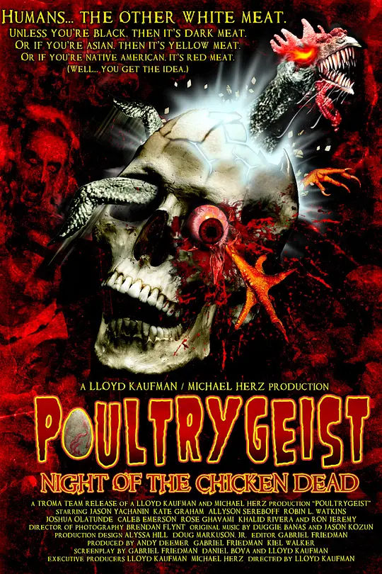 资源屯,蓝光原盘,磁力链下载,115网盘下载,ISO蓝光资【资源囤-ZiYuanTun.Com】。阿比没有想到自己的女友原来是个同性恋,气恼的他决定不去上大学,而是在女友经常抨击的美国快餐鸡肉馆里找了份工作。问题是,这家快餐馆建立在印第安人的墓地上,当那些印第安人的灵魂附身到那些死鸡上,将会发生什么事呢?幕后花絮:由惊悚喜剧大导演LloydKaufman倾力制造的《Poultrygeist:NightoftheChickenDead》颠覆了丧尸界一成不变的景象:将丧尸造型最大化的歪曲,凡是被病毒感染的人都要变成顶着鸡头的活死人!虽然此片的造价极低,但场景却是非常可观——超过数百人的演出阵容(绝大部分都是扮演丧尸)决不容小看。影片的拍摄地是美国一个偏僻的小镇,许多人都是在看拍摄剧组热闹的同时抵制不住诱惑而纷纷加入丧尸行列做即兴表演……导演LloydKaufman作为演员来说也是称职的,在一些著名的电影中经常能看到他的身影,比如近期上映的《撕裂人》、《大城小调》等。