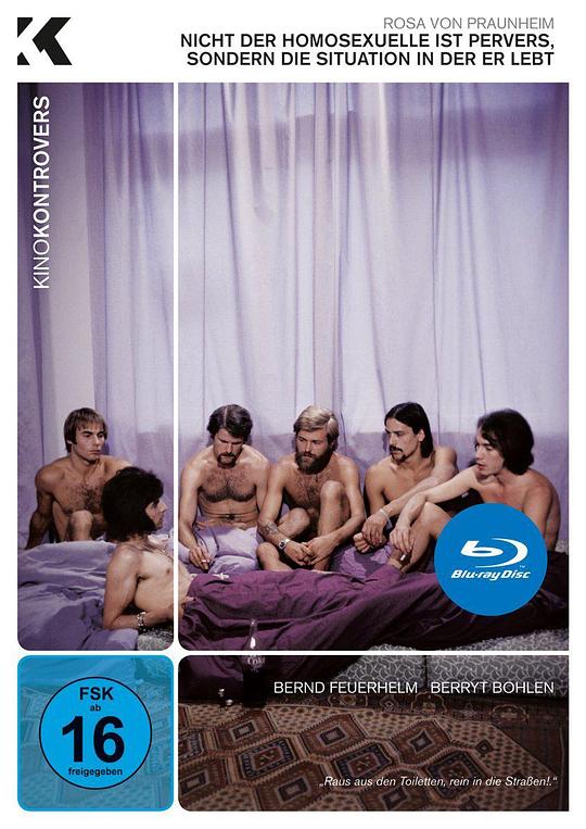 It Is Not the Homosexual Who Is Perverse, But the Society in Which He Lives (Nicht der Homosexuelle ist pervers, sondern die Situation, in der er lebt) is the earnest title of Rosa von Praunheim’s 1971 PG-chaste first feature, which has aged like good cheese from a scandalous sensation (a political wakeup call to gays) into a textbook example of classic camp—and a delightful time warp trip through queer cliché. The very colorful color film (shot MOS) opens with von Praunheim’s camera trailing two fags—one blonde, one brunette—walking down a sunny Berlin street. Daniel, the shy brunette, is new to the big city and blonde Clemens is generously offering him a place to stay. (We know this by the heavily German-accented English, dubbed and spoken in a “Sprockets” cadence.) “It’s so hard to find someone who’s sincere,” Clemens’ voice says as they cuddle on his bed back at the apartment. “I really dig you.” Then, from out of nowhere, a grave, German-accented, Moses-like voiceover explains that “faggots long for loving relationships”, but “live in a dream world of glossy magazines and Hollywood movies.” Now naked in bed with Daniel, Clemens proclaims, “I’d like to throw the window open and show the whole world how wonderful it is when two men are in lov【资源囤-ZiYuanTun.Com】!” And so it goes. Daniel fusses over his hair in the mirror while Clemens’ heartsick Teutonic voice narrates their newfound domestic bliss. “Every hour and minute I spent alone was torture for me.” Luckily, the lovebirds spend plenty of time doing things like “watching television to further our education” and housecleaning together. They also read or write letters. “Dear Mother,” Daniel’s voice begins. But alas, as Clemens stares into a cabinet chock full of knickknacks, that damn nagging Moses voiceover returns. “Faggots try to imitate middle class marriage,” he hisses, holding forth on the subject of men taught to be in competition with one another, to be self-involved—dooming the faggot relationship. Next thing you know, Daniel’s sad voice sighs, “Four months have passed. I’ve decided to leave Clemens.” Then a jaunty, genial German narrator intones, “Daniel was often cruised by a well-to-do man.” And there’s girlfriend strolling along with the tight-panted “benefactor at his country estate!” As they stop for a glass of champagne beside a statue, Moses abruptly thunders about the myth that the homosexual’s “interest in the arts is a way to make life more bearable,” when in reality “the arts are a tool for the rich and powerful,” for it makes it “much easier to get them into bed.” Cut to a piano and a wild-eyed fag singing about Deutschland! Nearby, the benefactor plays with his ascot, a gaudy silver ring in the shape of an insect on his finger. The camera pulls back and pans around the roomful of old queens respectfully listening to the recital. Moses announces, “Youth and good looks are tremendously important to old fags.” Like Hitchcock’s birds, the elderly Marys are suddenly swarming over poor Daniel—who gets nauseous and runs out the door. Then it’s off to an outdoor café—with a big sign reading “Moby Dick’s.” The genial German narrator informs that Daniel’s found a new job working at a “meeting place for homosexuals” where “conversations about film, fashion and physical culture give him ideas about how to fill his leisure time.” Moses butts in to add that faggots “gather to listen to Nina Simone, Judy Garland and Barbra Streisand” and “gather at Fire Island and San Francisco.” He intones, “Fashion has to be like a second skin that suggests the size of the cock.” A sissy saunters down the street in knee-high moccasins and shorts. Moses also warns, “The young fag must give up his interests for more homosexual interests.” And there’s Daniel sunning himself with his fellow homosexuals! Moses snipes, “He was entranced by his strong body and butch style” as a torso, hairy chest and tight blue jeans, appears in medium close up. The genial German offers, “Daniel could sit for hours and enjoy being cruised.” Then: “Wolfgang had a lot in common with Daniel” as the two mop-haired, mutton-chopped boys rub lotion on one another. But all is not well in fairyland. Moses brings news that Daniel has begun going to gay bars—is becoming addicted! And, yup, there’s Daniel, wandering around a dark and dingy hole. Moses explains, “It’s easy for faggots to find one another because they offer themselves on street corners like whores.” Cut to a queen having a hissy fit in front of the bar as another tries to calm her down, all while Moses holds forth on sad fags, how they don’t know how to use their sexual freedom for happiness, how their “greatest enemy is the conspicuous queen.” Two fairies in short shorts appear in the frame, fawning over two embarrassed fags. Moses laments, “Daniel now has no other interest than being a fag.” Cut to a motorcycle gang, leather boys cruising one another amongst the nighttime trees. They feel up each other’s zippers, chains, and studs—a clothed grope fest as Moses teaches that, other than “trans-westites, [who] long for women’s organs, leather freaks are the fags with the most hang-ups.” In fact, “The leather queers are really nice, polite people who suffer from their own weakness.” And that’s when Daniel, “bored with talking,” fatefully leaves the bar scene for the park where he “slowly made his way through the tense choreography of men.” (So sayeth Moses.) Cut to outside a public restroom (a “well-known meeting place”). Men who cruise restrooms “despise tearoom trade,” the voice of Moses trembles. Hustlers—“usually runaways from broken homes” who are “often not queer”—frequent these spots. (Assorted hustlers and fags mill about as a piece of rough trade stands like a sentinel in fron